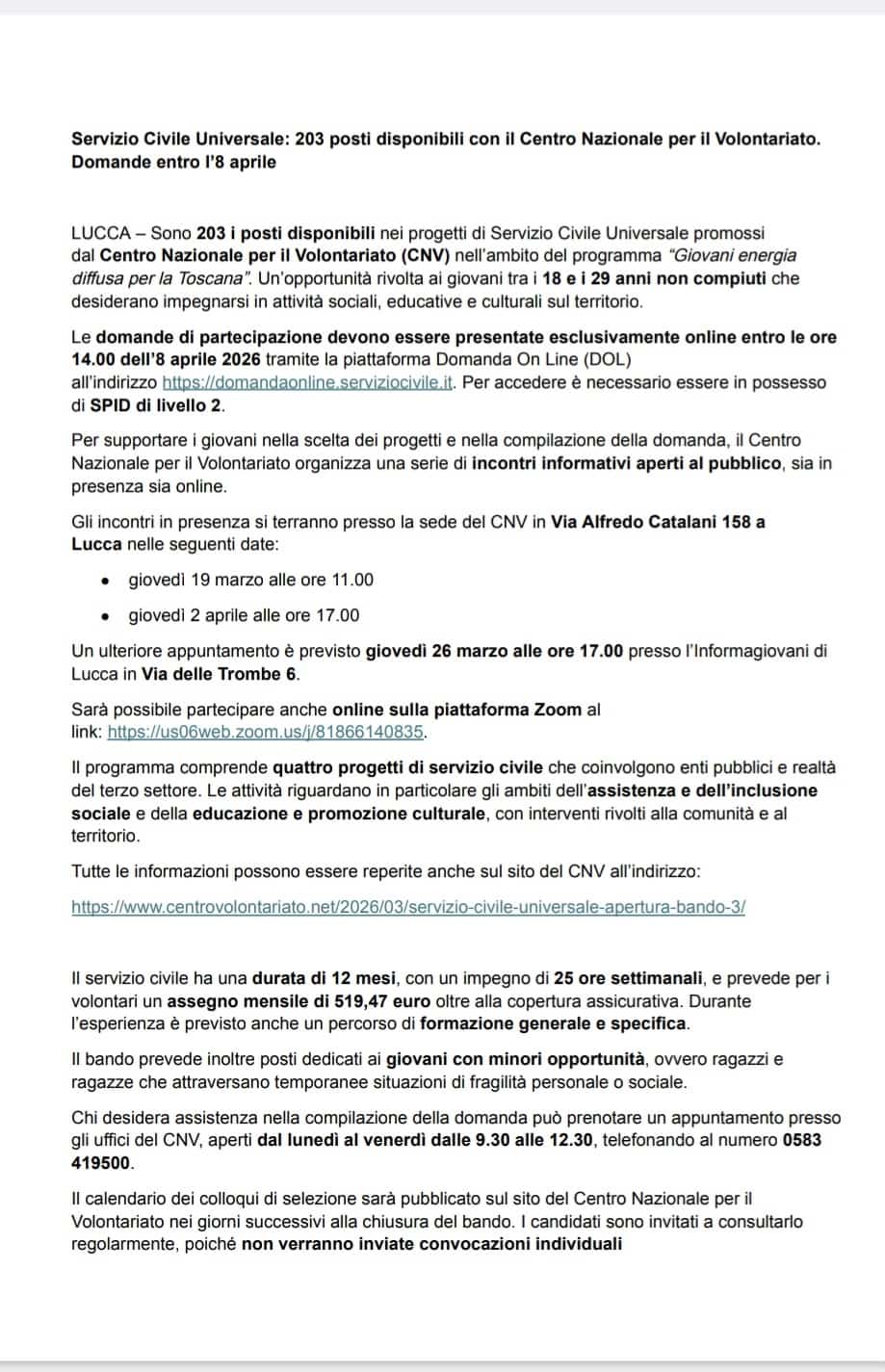 Le domande devono essere presentate entro e non oltre le ore 14:00 dell’8 aprile 2026.